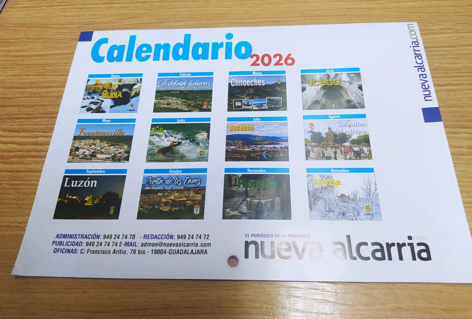 El periódico Nueva Alcarria ha editado Calendarios de 2026, que se pueden recoger en las oficinas del Ayuntamiento, y en la biblioteca del municipio, hasta la finalización de existencias.