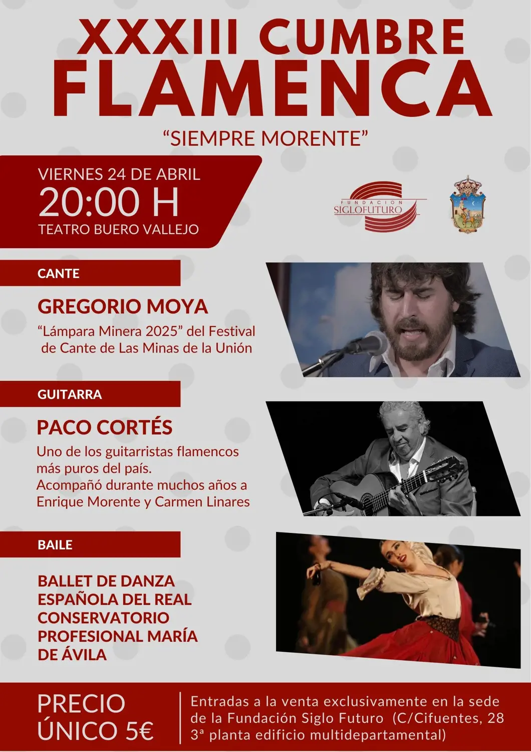 La Fundación Siglo Futuro celebrará su esperada XXXIII Cumbre Flamenca el próximo 24 de abril en el Teatro Buero Vallejo de Guadalajara, y ha querido hacer extensiva una invitación especial a todos los vecinos de Tórtola que deseen disfrutar de este evento cultural. Gracias a esta iniciativa, los residentes del municipio podrán asistir de forma totalmente gratuita al espectáculo, una oportunidad única para acercarse al arte flamenco sin coste alguno.