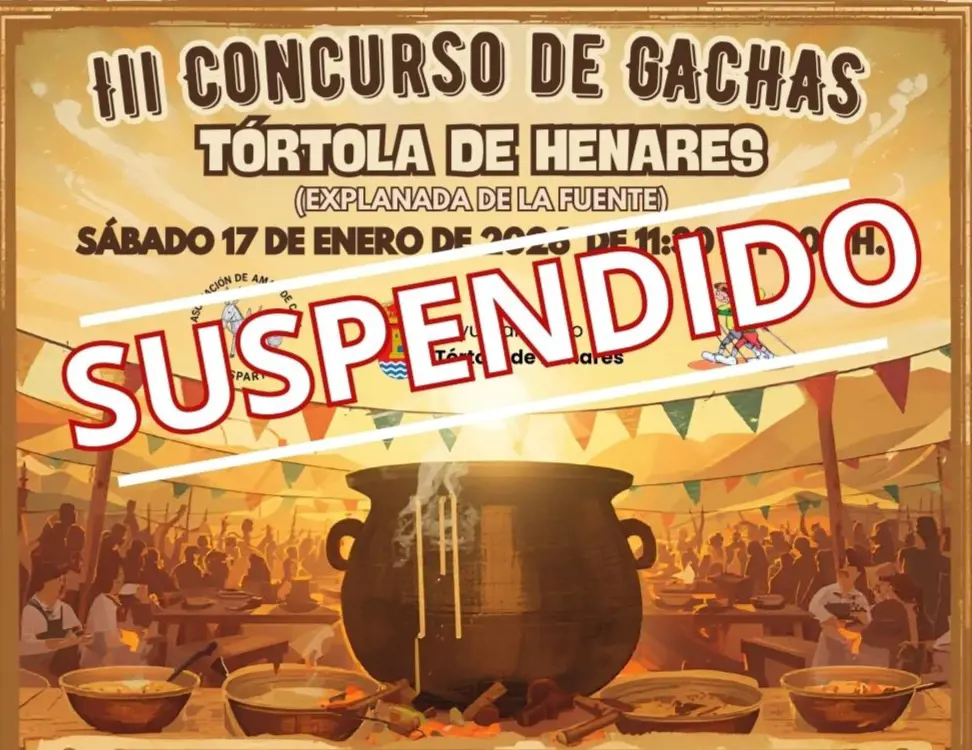 El III Concurso de Gachas de Tórtola de Henares, previsto para este próximo sábado, ha sido suspendido de manera definitiva por la organización debido a las adversas condiciones meteorológicas previstas para esa jornada. La decisión se ha tomado tras consultar los pronósticos, que anuncian lluvia persistente, lo que imposibilitaría el desarrollo del evento al aire libre.