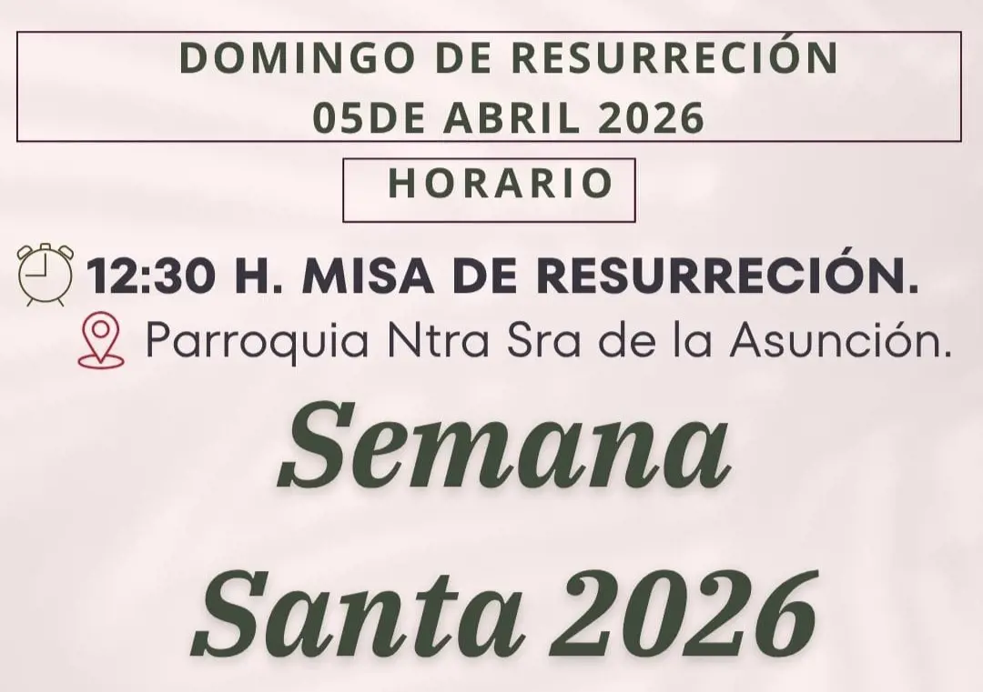 Hoy, domingo 5 de abril de 2026, Día de Resurrección, la Parroquia Nuestra Señora de la Asunción acogerá la Misa de Resurrección a las 12:30 horas. Este solemne acto litúrgico pondrá fin a la Semana Santa 2026, congregando a fieles y visitantes en torno a la celebración central de la fe cristiana: la victoria de Cristo sobre la muerte.
